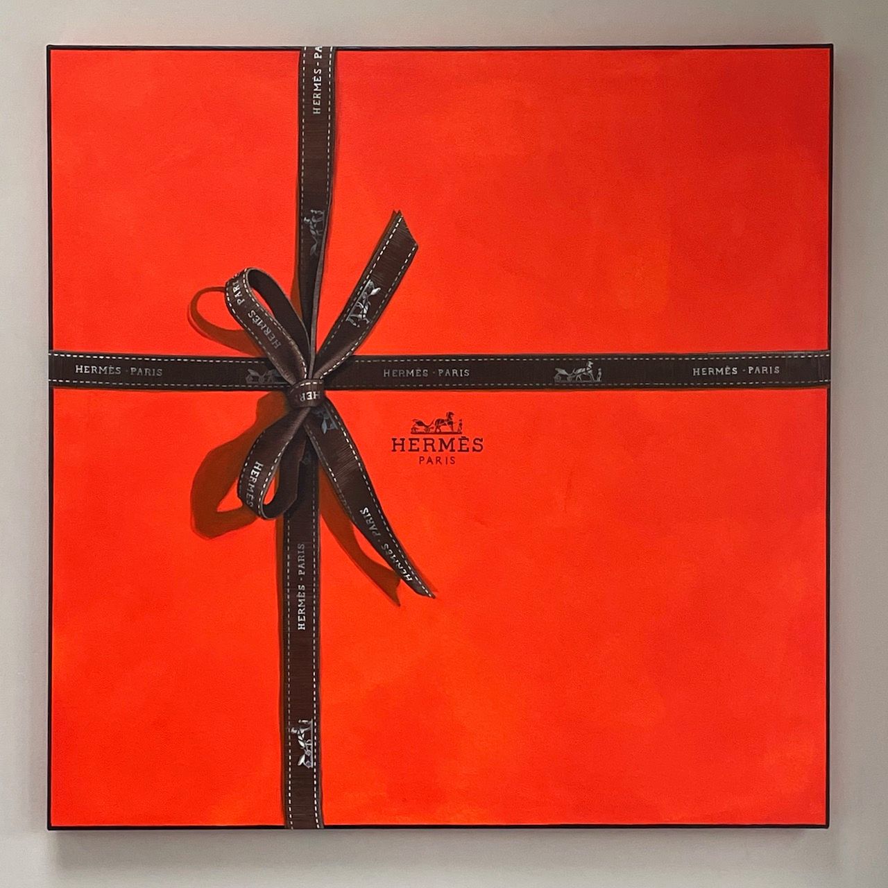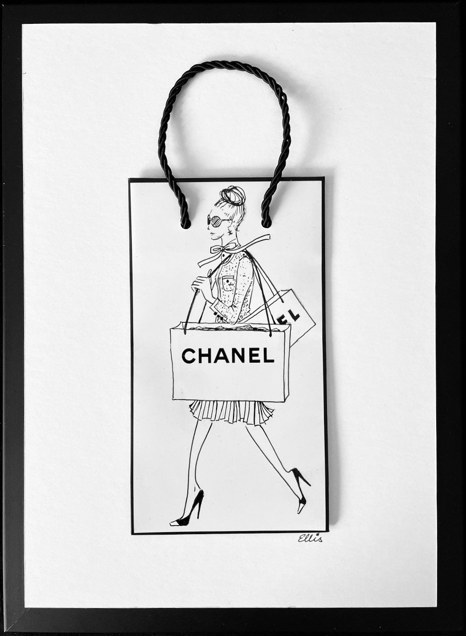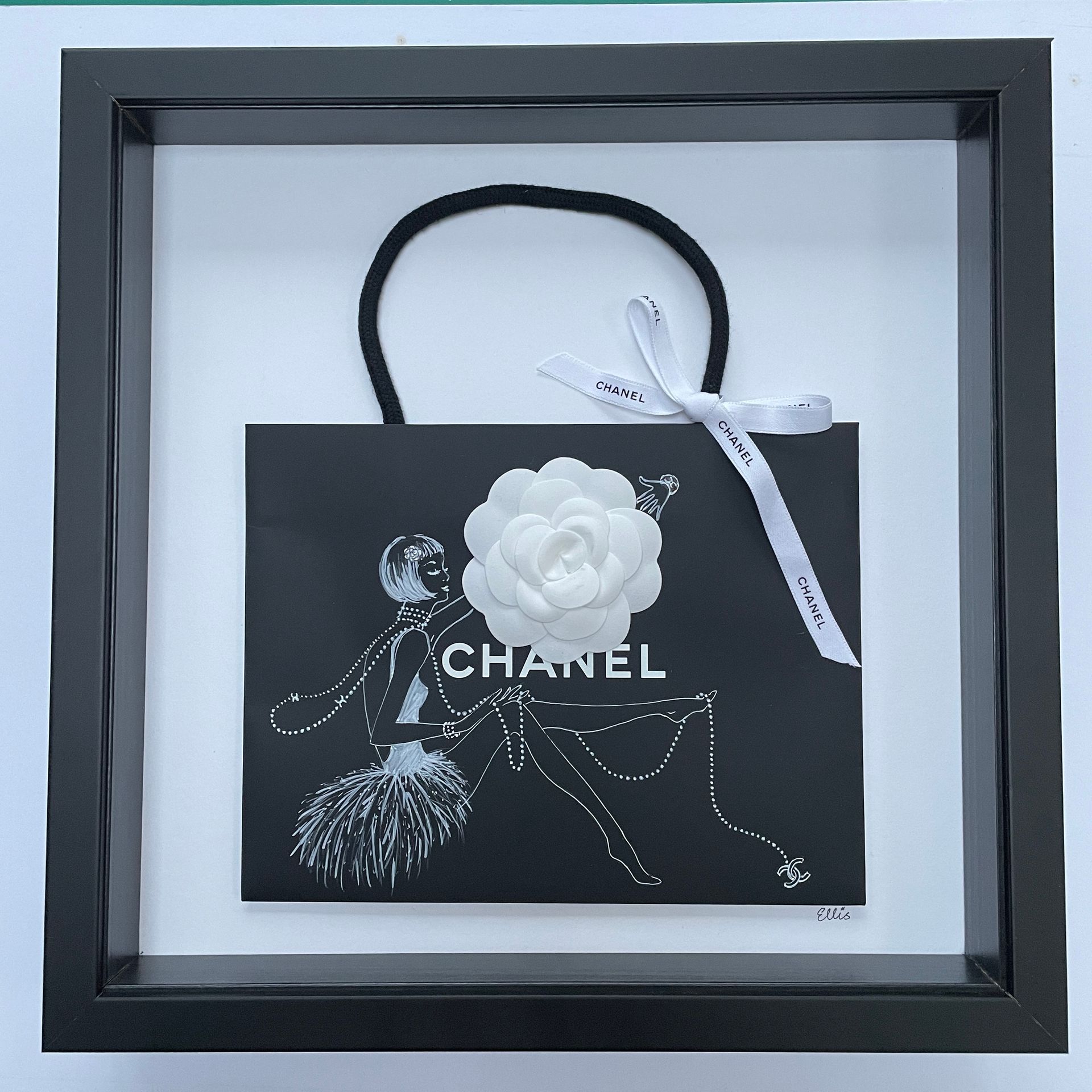 Coco Mademoiselle perfume delicately painted on warm grey background. Acrylic on cotton canvas. Unframed, signed