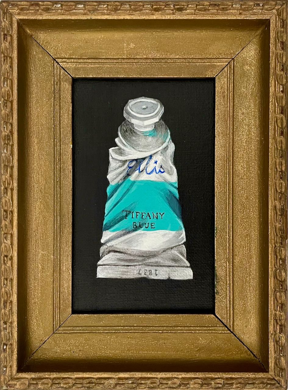 Aqua Di Parma scent bottle painted on the same yellow ochre background as its iconic packaging. SOLD but contact me if you would like similar artwork - originals of this bottle starting at £160